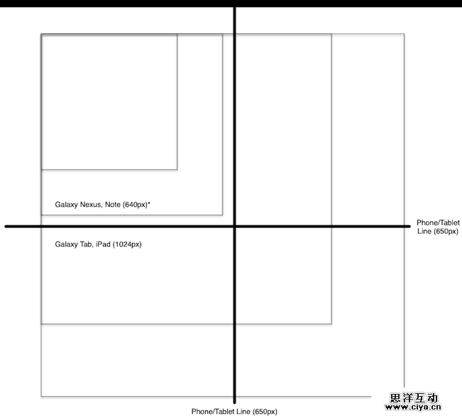 通过将阈值设置为650px ,我们将iPhone,Galaxy Nexus分类为小触摸屏设备,而将iPad,Galaxy Tab分类为“平板”。跨界的Galaxy Note在这种情况下被归类为“手机”,将采用手机布局。