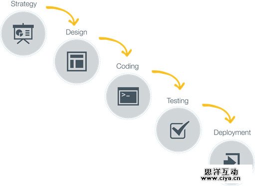 你可能熟悉典型的“瀑布模式”的开发过程:从系统需求分析开始,然后着手设计,接着开始前后台开发,最后进行评估并且实施。线性性质是瀑布式开发的主要特点:当这一阶段完成,下一阶段紧接开始,两者配合的几乎天衣无缝。