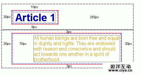 上面的图示看上去可能感觉有点理论化,好吧,让我们试着用一个实例来解释CSS盒状模型。在我们的例子中,有一个标题和一些文本。该例的HTML代码如下: