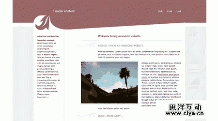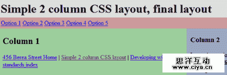 5、简单两栏CSS布局- 这是一个创建简单两栏布局的教程。这种布局包含了一个标题区,一个水平导航条,主内容区,边侧栏,和页脚区。并且这个布局是水平居中的。