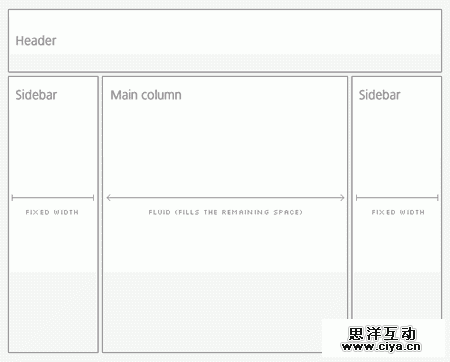 9、非主流!多栏布局- 多栏布局,等高栏(每一列的高度都相等),固定或变宽中央区,简洁标记,CSS 。(译者注:原文作者的图配的和上图一样)