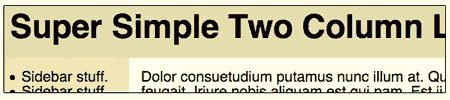 4、超级简单的两栏布局- 创建不同于常规的水平布局的站点技术(译者注:这里是原作者笔误吧和上面的内容一样).