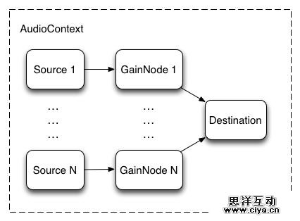 游戏音效的另外一个关键点是可以同时有多个。想象一下,你与多个演员拍摄枪战时。每个机枪每秒触发多次,造成几十个音效同时播放。从多个源同时播放音效,还要对音效源精确计时,是网络音频API真正的亮点。