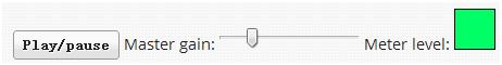 要知道这是具体如何实现的,下面是一个示例,在此你可以调整主增益。如果增益设置过高,会导致声音削波。监视器会变成红色来给出削波的视觉反馈。下面的音响生态环境是Disco Dan的混音作品,原曲是由Yasunori Mitsuda所做的伟大的“超时空之轮”。