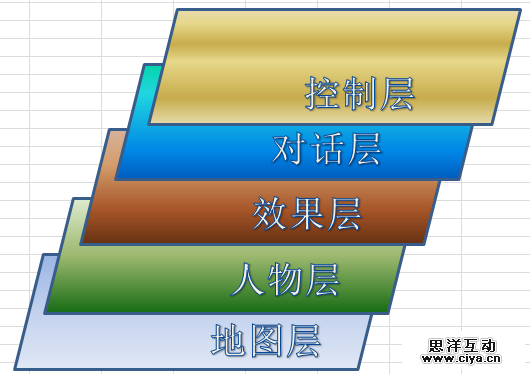 一款RPG游戏,我简单把它分为地图层,人物层,效果层(一些法术效果等),对话层,控制层(按钮菜单等)。 如下图