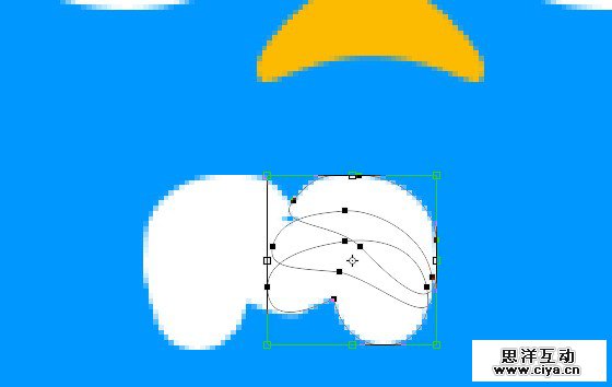 按住Alt+Shift键向下拖动圆形,我们会在垂直方向上复制出另一个圆作为小鸟的身体。 执行Ctrl+T对下面的圆形进行变换,将其调整为下图的形状。
