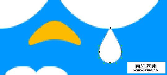 接下来绘制泪珠。可以先用椭圆工具创建一个圆形,然后选择最上方的锚点向上拖动,最后用转换点工具将其转换为锐利的拐角即可。
