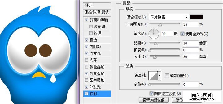 最后为眼睛添加投影,以使眼睛有凸起的效果。