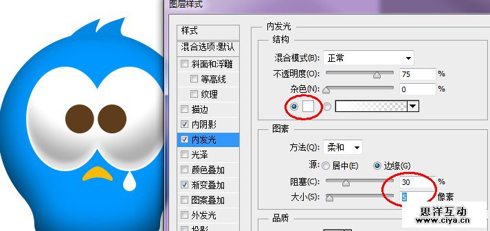 为使眼睛边缘亮起来,我们为其添加内发光样式。