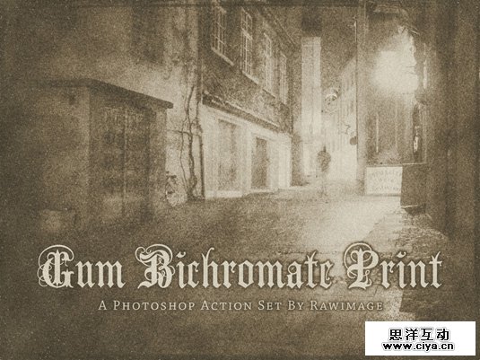 使用这个动作直接模拟出19世纪树胶重铬酸盐印相法洗出来的照片,带有美丽的纹理效果。