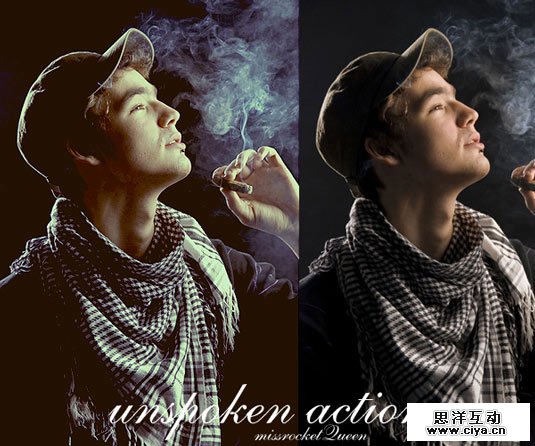 使用这个动作自动把人像变得像是你使用了模特一样。一系列效果在你的人像周围建立了漫反射发光效果,最终生成像是杂志封面的效果。