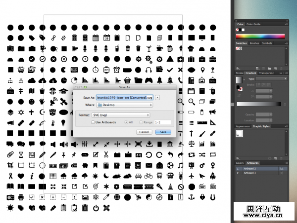 如果你有Photoshop格式的图标集,那么这个导出的流程会稍微复杂一些。除了Photoshop之外,还需要使用到Illustrator: