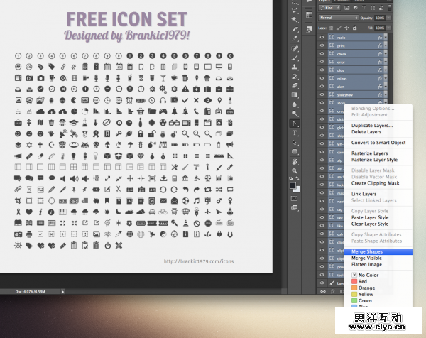1,在Photoshop中,选择所有的Photoshop形状层 ( Shape Layers )和合并形状(Merge Shapes)。