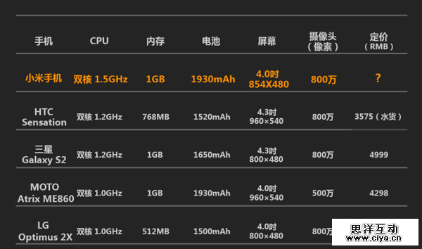 所以雷布斯在2011年产品发布会上,就开始巧妙地用这关键一张图来分解产品属性: