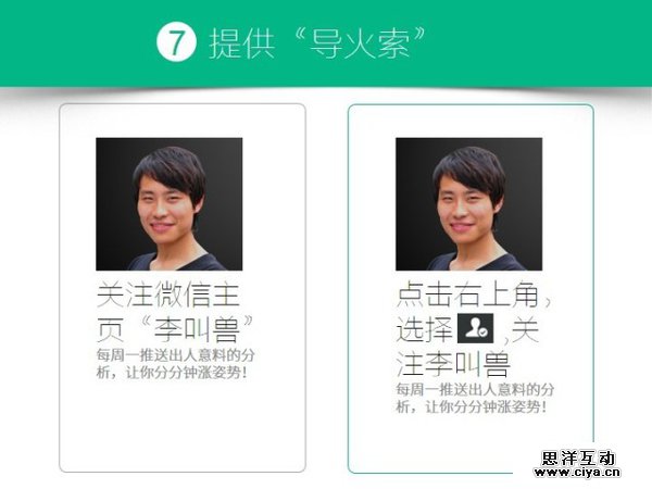 比如上图,假设这是在微信主页发的文章,为了让你关注该微信主页,肯定是右边的文案更有效—它让你想都不想就知道现在怎么做。