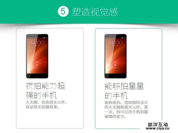 你的文案必须写的让读者看到后就能联想到具体的形象,比如上图文案,如果只说“夜拍能力强”,很多人没有直观的感觉;但是如果说“可以拍星星”,就立马让人回忆起了“看到璀璨星空想拍但拍不成”的感觉。