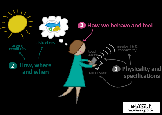 移动设备的差异化直接作用于以用户为中心的设计的整个过程:从用户研究到最终的开发和实现方案的测试。而实现方法和信息架构是整个设计流程中受到最大影响的。