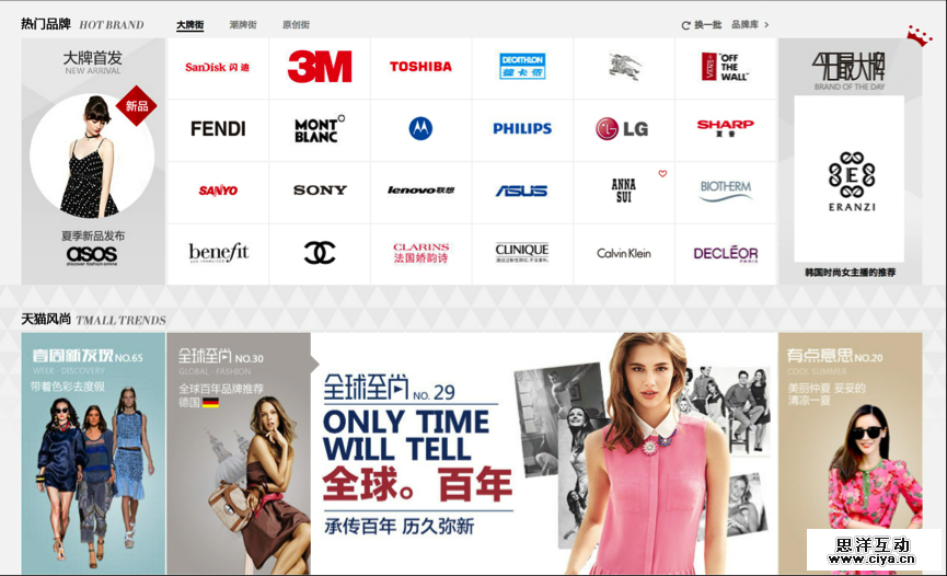 的确,在B2C市场中,许多西方品牌比中国品牌更具有优势,而中国用户也极为认可这一点。这些非华裔模特和英文正是要强调这些品牌和产品的出处。