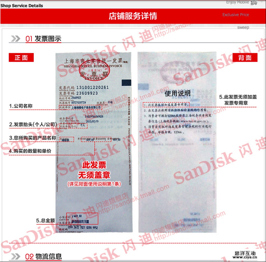 产品介绍还不够,商家还得告诉用户正式的收据长啥样方便他们辨别真假: