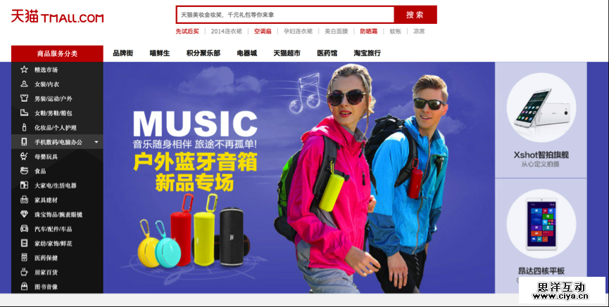 对于那些有目的的网购用户而言,天猫首页顶部的搜索框是最重要的入口。但是作为中国首选的B2C电商平台,天猫首页顶部左侧的产品分类目录每时每刻都有数以百万计的用户在点击、浏览、筛选。