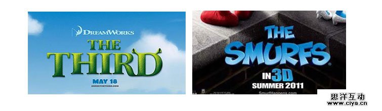 分析:水浒Q传是一款Q版游戏,我们可以从卡通动画海报上去找找灵感,以下为两个海报参考,我们看到海报文字都比较活泼,灵动,所以我们的广告也可以从文字变形方面进行设计:
