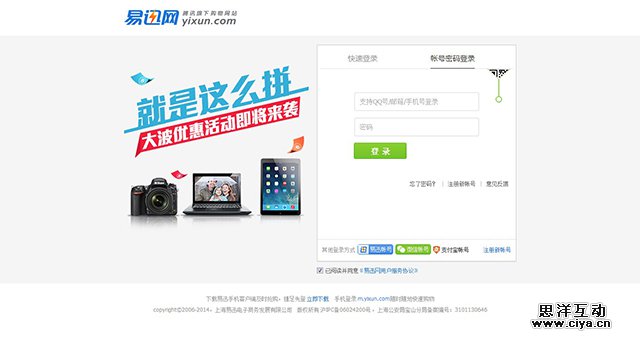 充满号召力的文案一定要够简短够顺口,易迅网的“就是这么拼”虽然称不上多有创意,但着实能勾起用户的购物欲,让用户对登录注册更主动。