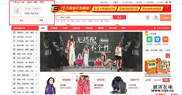 一号店的登陆页是同类网站中做的很周到的,在首页的登录入口位置做了一个鼠标悬停显示的效果,这样可以避免用户因为误点而造成的不必要的点击。