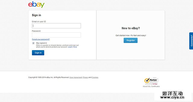 ebay的网站走的是极简路线。而表单形式在登陆页面中基本上避免不了,所以,ebay很聪明的只保留登录部分,有注册需要的用户可以点击右侧的按钮跳转到另一个页面。这是一个两全其美的做法,既让登录页面变得更简单,也让网站的条理更清晰。