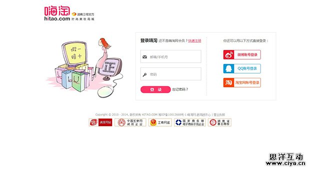 点进登陆页后,嗨淘的标题依然与众不同,相比较普通的“欢迎登录”,“还不是嗨淘网会员?”这样的标题是不是更能让用户愉悦呢?