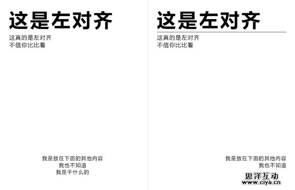 右边利用辅助线,将上半部分的左对齐与下半部分的右对齐联系起来,使得画面稳定,内容具有连续性。