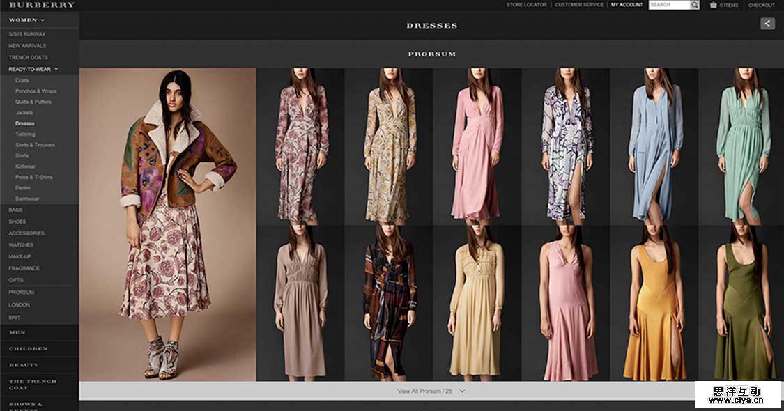 Burberry使用暗灰色来散发出神秘、高贵和精致的感觉。当用户浏览Burberry的网站的时候,会觉得这个网站是有讲究的,有品质的,形成信任感。