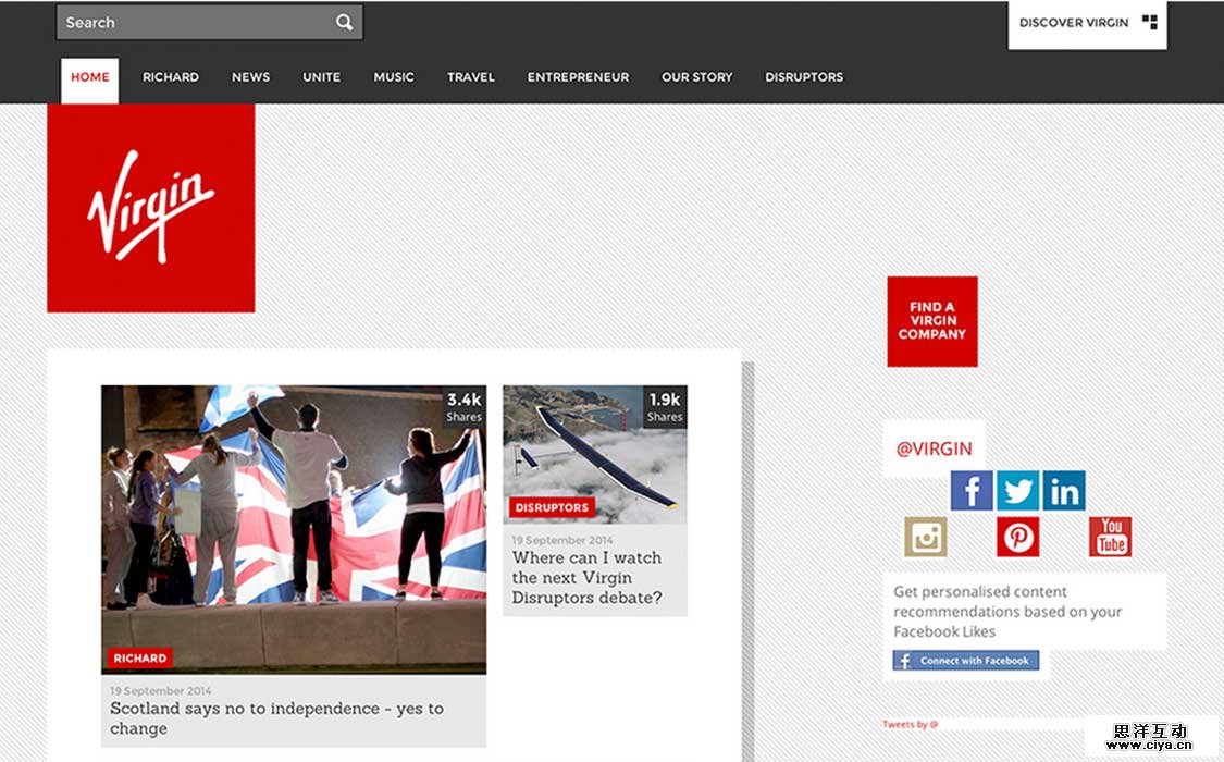 作为一个大型品牌,Virgin 主要使用了红色和白色来传递信心的感觉,其中的红色传递出行动、能量和激情的感觉,让品牌具备了力量感。