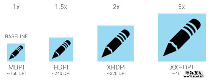 Android开源自由的代价就是设备规范的不可控,市面上充斥着各种品牌的android手机,有着各种各样的尺寸和分辨率,为了适配各种不同分辨率的设备,同一个图标需要切成N份,每一份对应一个尺寸。