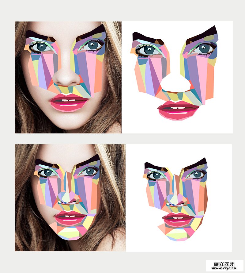 对于WPAP的风格人像,也许很多人一开始看到都会有一种对夸张手法的不适应。但我认为艺术的精髓并不独守赏心悦目就够了。除了训练自己对色彩的敏感和对光影的把握,在绘制过程中对于每一个碎片与其他碎片的缝合和协调,都是独一无二的体验。希望你能在这一创作过程中收获乐趣。