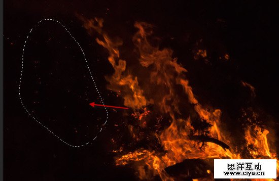 我们要为文本周围添加火花效果。让我们回到火焰素材并选择下面的部分: