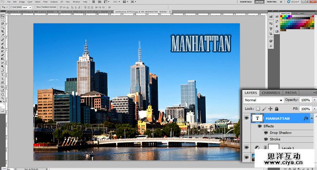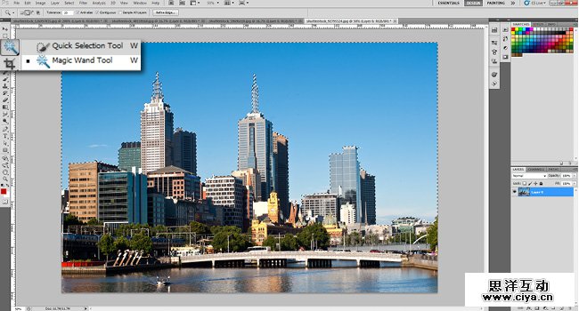 使用魔术棒我们可以选择并删除曼哈顿的天空。