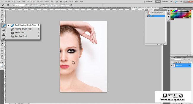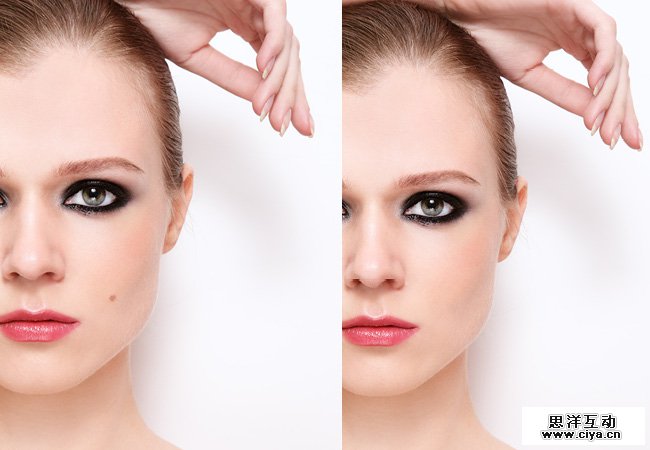 如名所然,此工具能令事物看上去更漂亮。如果你有斑点,瑕疵或者一个痣,那么这个工具能很容易帮助去除。同样对于粉刺也是有效的。将刷子放在你想要修理的区域,确定刷子比瑕疵处要大一些,然后点击就可以了。Photoshop会自动从周围区域进行取样并覆盖选定区域,而你并不需要做其他动作。