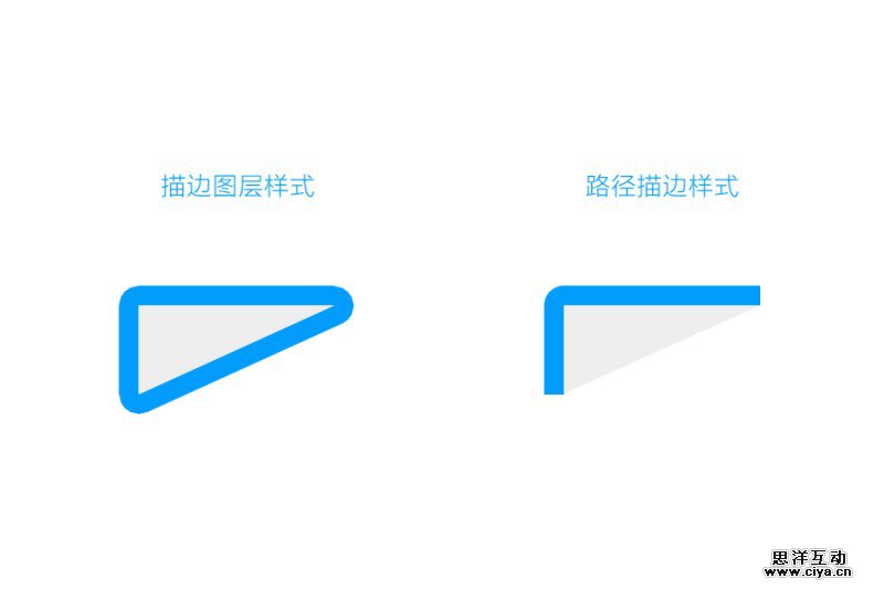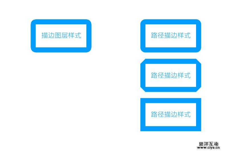 使用常用的描边图层样式只可以是圆角的效果。但采用路径描边样式可以画出圆角,斜面,或者斜角。这会大大减少绘制图形的工作量。