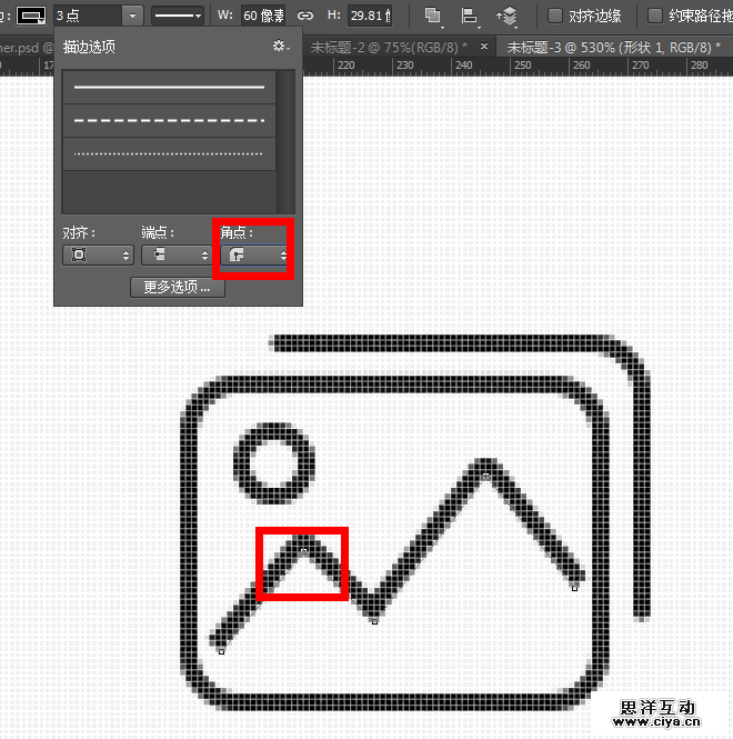 6,完毕后调整路径描边的起终点的样式为圆角或直角。