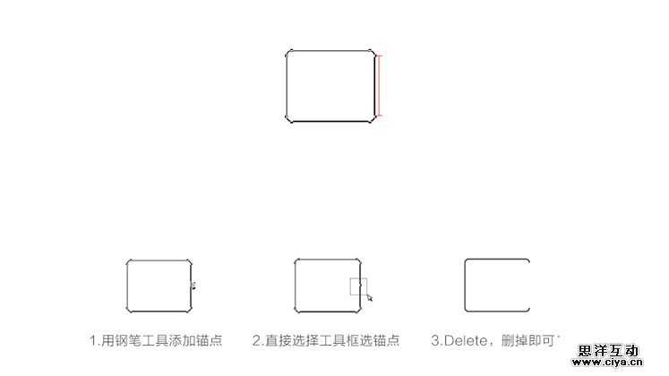 插播提醒:在需要删除中间一段路径的时候,需要先用钢笔工具进行添加锚点,然后用直接选择工具选中进行删除。