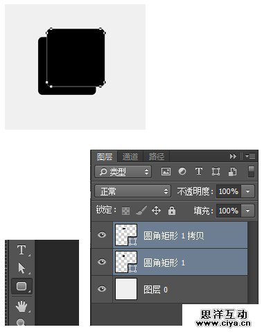 2,用矩形路径画出两个矩形(快捷方式:画一个圆角矩形,然后按住Alt键拖动图层即可进行复制)。