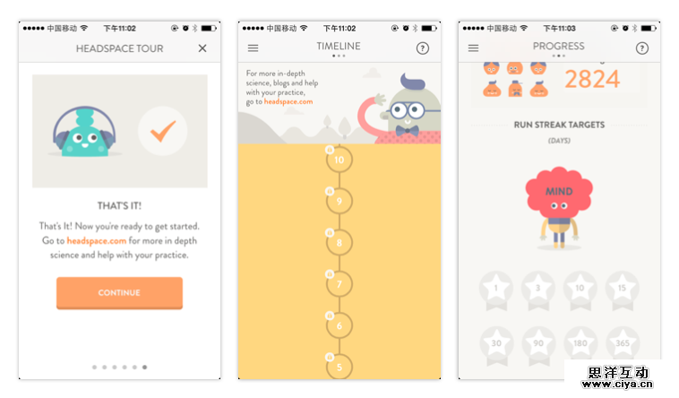 而2015年的流行色比较适合营造温馨、舒适的感觉,比如这一款灵修功能的APP(是帮助大家开发大脑的啦~呵呵),偏灰白的色系用的恰到好处: