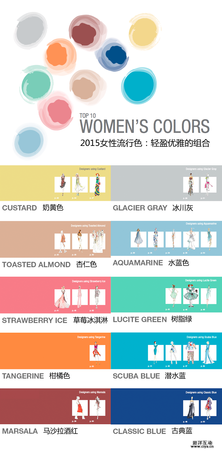 2015年春夏的色彩更加偏向冷色调,色彩更加柔软、明快和朴素。女性流行色的领衔颜色是水蓝色,空气感的蓝色调有一种梦幻般的感觉,令人宁静。这种给人舒适感的蓝色能帮助我们缓解压力。