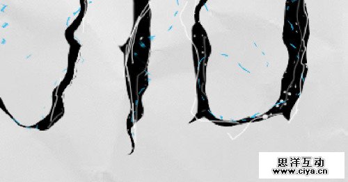 9、我们将会使用上述笔刷在黑色文本上添加一些白色和蓝色的线条图案,如下图所示