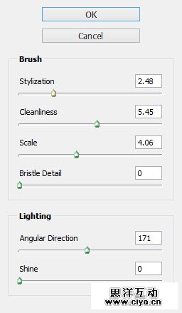 13、可选步骤(仅仅Photoshop CS6才行):拼合图片,复制背景图层,然后使用以下油画滤镜(滤镜>油画),如下图所示