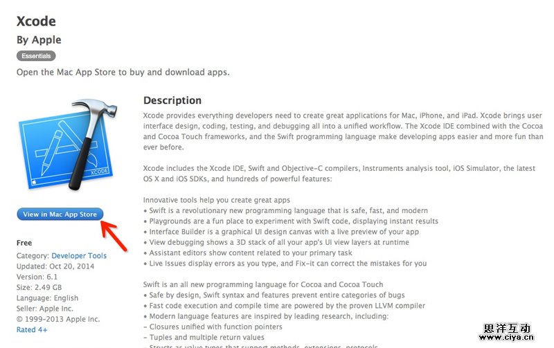 然后选择 View in the mac App Store,到达APP store界面,接着点击 View in Mac App Store