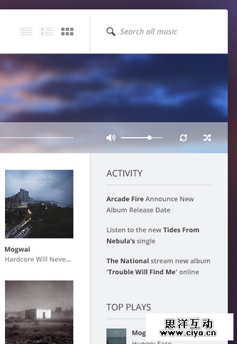 留白的空间收到了良好的效果,不同的元素有机的组合在一起,使得这个页面成为最好的音乐播放器UI之一。