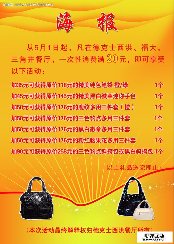 通过对德克士以往出街稿的分析,我们可以基本确定画面的主色调与色彩搭配关系,这样一来,整张海报的基调是不会错的。