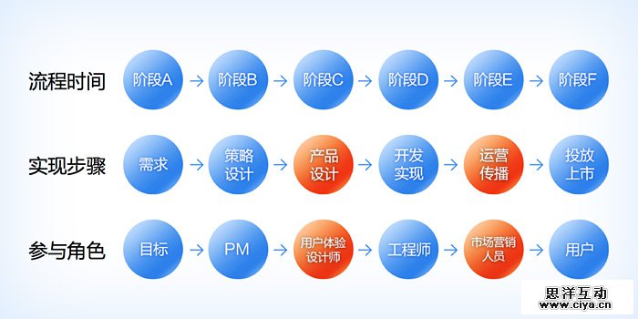 - 角色步骤:目标—产品PM—用户体验设计师—工程师—市场营销人员—用户