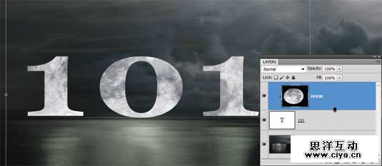 其实这就是剪切蒙板的功能,但是有一种更简单的处理方式:将图片图层置于文字图层的正上方,按住Alt键,单击两个图层之间的线,就搞定了!